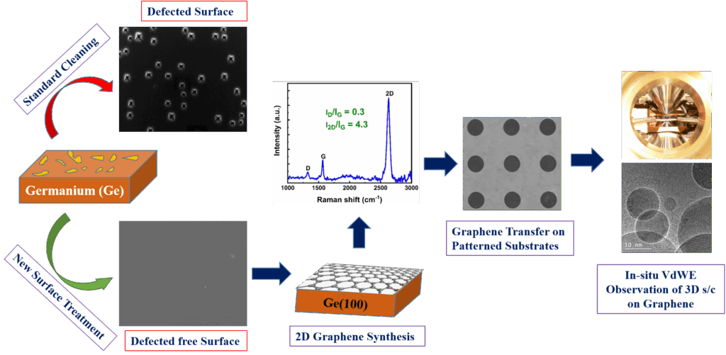 This research project explores several key topics, including the growth of monolayer graphene on semiconductor substrates (Ge, GaAs, etc.), wafer-scale single-crystalline 2D graphene (100–300 mm), detachable III–V/IV/graphene heterostructures for optoelectronic and photovoltaic applications.